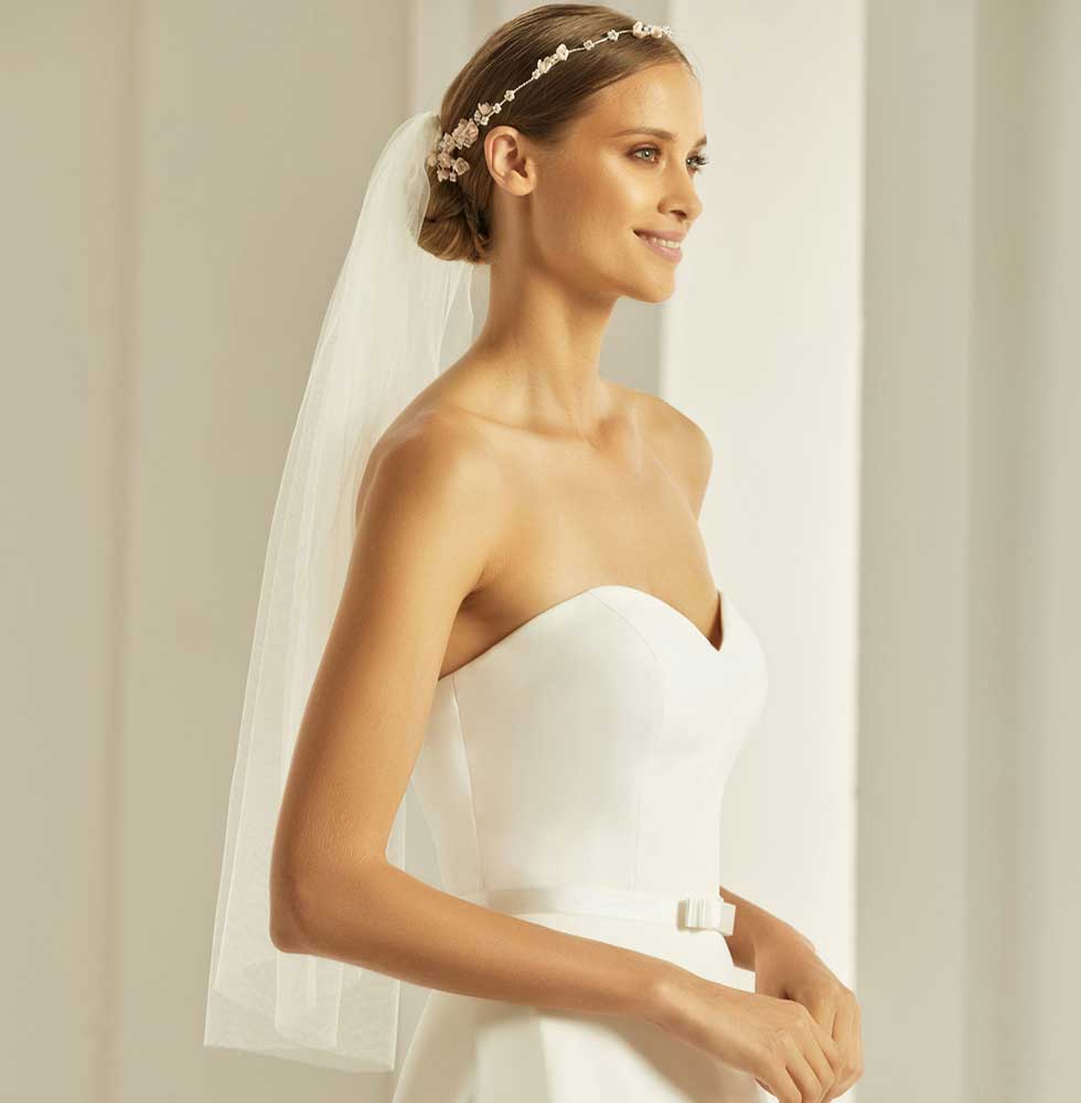 Vervollständige den Look mit dem passenden Brautschleier. Entdecke unserer grosse Auswahl in vielen Varianten.