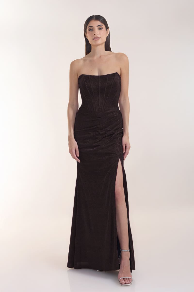 Atemberaubendes Abendkleid mit einer eng anliegenden Korsage. Das funkelnde Abendkleid mit Schnürung hat einen raffinierten Beinschlitz. Verleihen Sie Ihrem Look mit dem Abendkleid 19253-0220 in schwarz einen Hauch von Glamour. Ideal für besondere Anlässe.