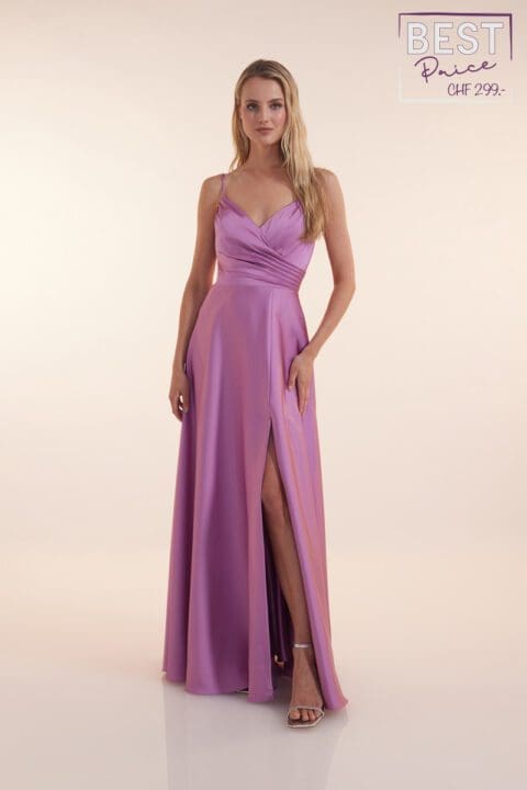 Atemberaubend schönes Abendkleid in hellblau mit einem wunderschönen bestickten Oberteil. Der leicht fallende Glitzerrock hat einen Beinschlitz. Dünne Spaghettiträger werden am Rücken gekreuzt gebunden. So entsteht ein toller Look und man wird zum Blickfang auf jeder Party.