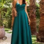 Elegantes Abendkleid für grosse Grössen mit Flatterärmel. Das Oberteil hat einen V-Ausschnitt vorne und hinten. Die Drapierungen im Oberteil und der fliessende Chiffonrock schmeicheln jeder Figur. Der leichte Glanzeffekt im ganzen Kleid zaubert einen glamourösen Look.