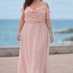 Elegantes Abendkleid für grosse Grössen mit einem weiten Satinrock. Das leicht transparente Oberteil mit breiten Trägern und einem V-Ausschnitt hat eine romantische Spitzenapplikation. Ein tolles Abenkleid in einer frischen Farbe.