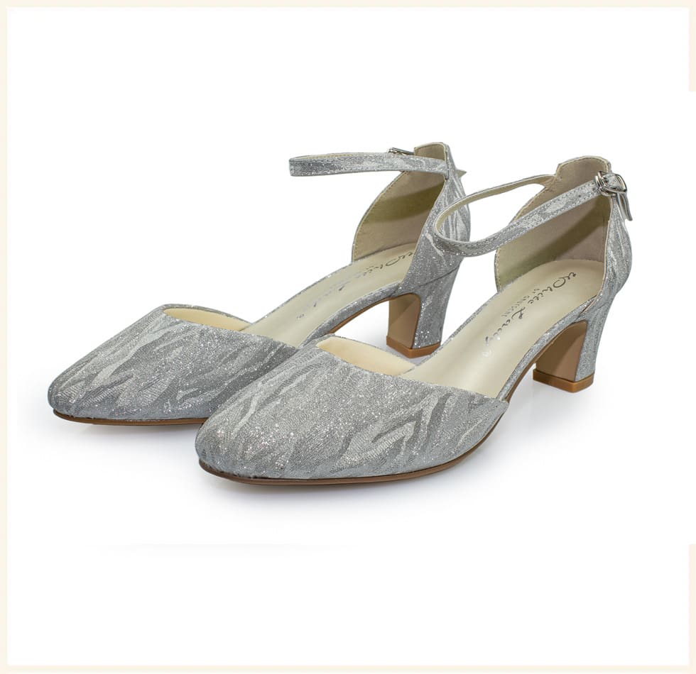 Thalia ist ein eleganter Slingpumps mit Glitzer-Finish. Die Abendschuhe sind gemustert und gepolstert, so dass die Schuhe besonders bequem zu tragen sind. Der Blockabsatz sorgt für einen bequemen Halt. Thalia sind die perfekten Abendschuhe in silber für jeden Anlass passend zu jedem Abendkleid. Kombiniere die Abendschuhe mit der passenden Handtasche in silber.