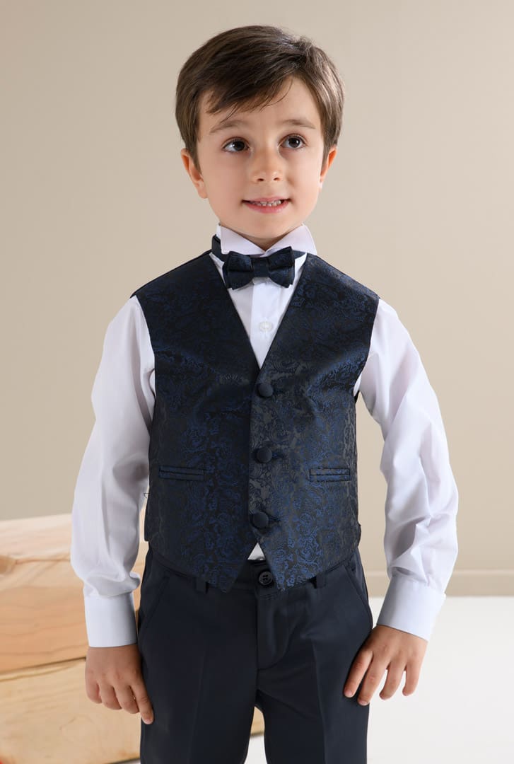 Eleganter Anzug für Junge für die Taufe oder einen anderen festlichen Anlass. Das Outfit beinhaltet ein Gilet, das passende Hemd und die Hose. Ein toller Anzug für einen besonders schönen Tag. Der Anzug für Junge garantiert eine bequeme Passform.