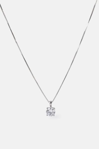 Wunderschöne Halskette für die Braut und den Alltag. Die Halskette hat einen einzelnen Kristall-Anhänger an einer dezenten Kette, aus 925er Sterlingsilber, mit einer Rhodium-Beschichtung erhältlich.
