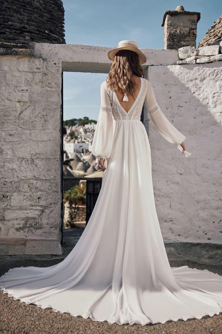 Bella Boho Brautkleid mit einem leicht fliessenden Chiffonrock. Der Rückenausschnitt ist in der V-Form gehalten. Die langen Chiffonärmel mit dem Boho Spitzeneinsatz geben dem Boho Brautlook ein tolles Aussehen. Erhältlich in ivoryAnprobetermin vereinbaren Teilen0 Weitere ArtikelBrautkleid Prinzessin Satin Brautkleid schlicht Brautmode schlicht Hochzeitskleid schlicht Feusisberg22. Juli 2022ZharaMehr erfahrenBrautkleid aus Satin Brautkleid schlicht Brautmode schlicht Hochzeitskleid schlicht Feusisberg22. Juli 2022RoyaMehr erfahrenBoho Brautkleid Free as a bird1. August 2022Free as a birdMehr erfahren
