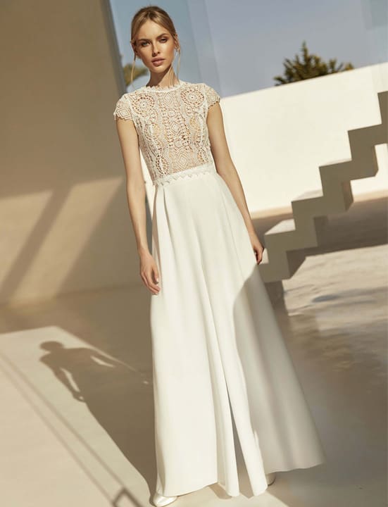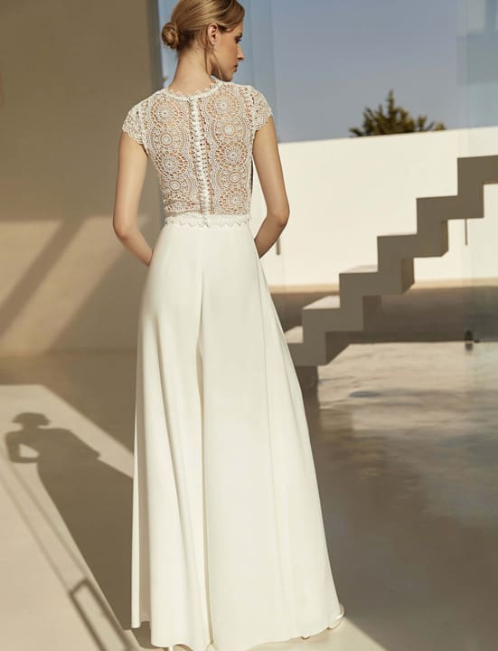 Die Brauthose ist aus Stretch-Crêpe gefertigt. Kombiniere die Brauthose mit einer Korsage, Spitzenbolero oder Überrock aus Tüll oder Chiffon. Kreiere zwei Looks für einen Tag. In dieser Brauthose siehst du an deinem Hochzeitstag garantiert stilvoll und modisch aus.