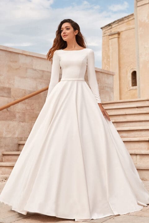 Aera Gerade geschnittenes schlichtes Brautkleid aus Kreppstoff. Mit V-Ausschnitt, Rücken mit tropfenförmigem Ausschnitt, lange Ärmel und Rock mit Schlitz vorne. Ein atemberaubendes Brautkleid für eine klassische Braut. Erhältlich in ivory Anprobetermin vereinbaren Teilen Weitere ArtikelClea14. Mai 2024CleaMehr erfahrenBrautkleid schlicht Brautmode schlicht Hochzeitskleider lange Ärmel Hochzeitsmode Feusisberg21. März 2023Kelly PremiumMehr erfahrenBrautkleider Schweiz Brautmode Hochzeitskleider Schweiz21. November 2022WinterMehr erfahren