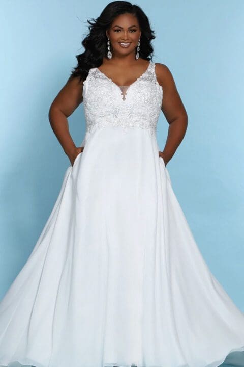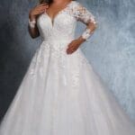 Die schlanke A-Linie-Silhouette ist die perfekte Kombination für deine Märchenhochzeit. Bei diesem Design dreht sich alles um Glamour mit funkelndem Tüll, der mit Blumenapplikationen entlang des trägerlosen Herzausschnitts gekrönt ist. Der Abschluss bildet der zauberhafte Verschluss aus satinierten Knöpfen. Optional ist das Kleid mit Trägern erhältlich.