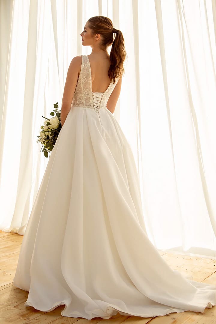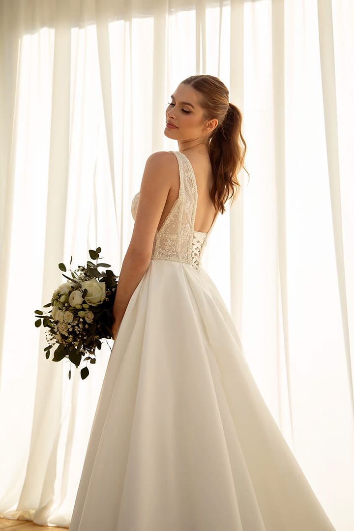 Nixie Elegantes Brautkleid mit einem weiten Satinrock mit Schleppe. Das Oberteil ist mit einer zarten Spitzenapplikation verziert. Der tiefe Ausschnitt geben dem Brautkleid ein besonderes Aussehen. Erhältlich in ivoryAnprobetermin vereinbaren Teilen Weitere ArtikelBrautmode Schweiz Hochzeitskleider Brautgeschäft Schweiz3. Juli 2023ClusiaMehr erfahrenBrautkleid Chiffon Brautmode Hochzeitskleider Feusisberg Schweiz19. Januar 2024GajanaMehr erfahrenBrautmode Schweiz Hochzeitskleider in Zürich Brautgeschäft Feusisberg3. Juli 2023LarsaMehr erfahren