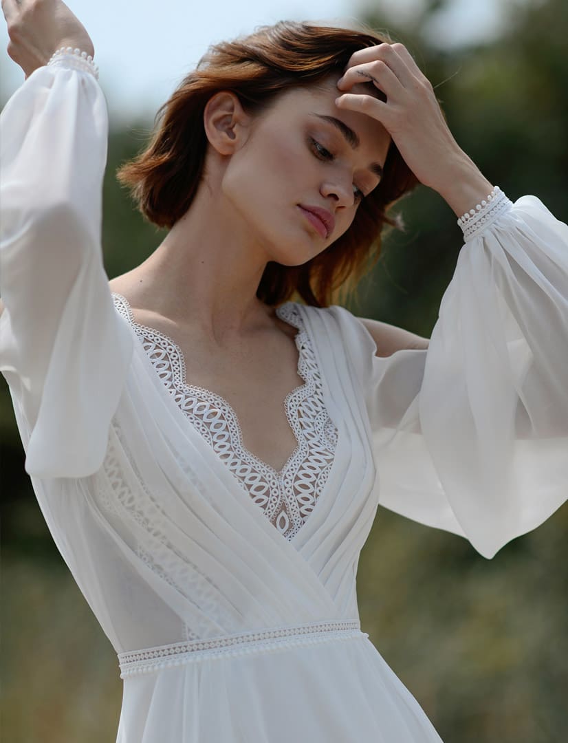 Silvana Romantisches Brautkleid mit langen Ärmeln aus Chiffon. Der luftig leichte Chiffonock hat zwei Beinschlitze. Der V-Ausschnitt im Oberteil ist mit einer Boho Spitze verziert. Erhältlich in ivoryAnprobetermin vereinbaren Teilen0 Weitere ArtikelBrautmode schlicht Feusisberg Brautkleider Schweiz Brautmode Zürich Brautmode Schweiz Hochzeitskleider Brautboutique Brautgeschäft Feusisberg3. Juni 2025GayaMehr erfahrenBrautkleid schlicht Sulina Adriana Alier Brautmode schlicht Brautkleid schlicht Feusisberg22. November 2025SulinaMehr erfahrenBrautkleid schlicht Sabila Adriana Alier Brautmode schlicht Brautkleid schlicht Feusisberg20. November 2025SabilaMehr erfahren