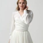 Wunderschöner einlagiger Schleier aus Tüll, verziert mit einem gestickten Blumenmuster und Stoffblumen. Die Länge ist 280cm.