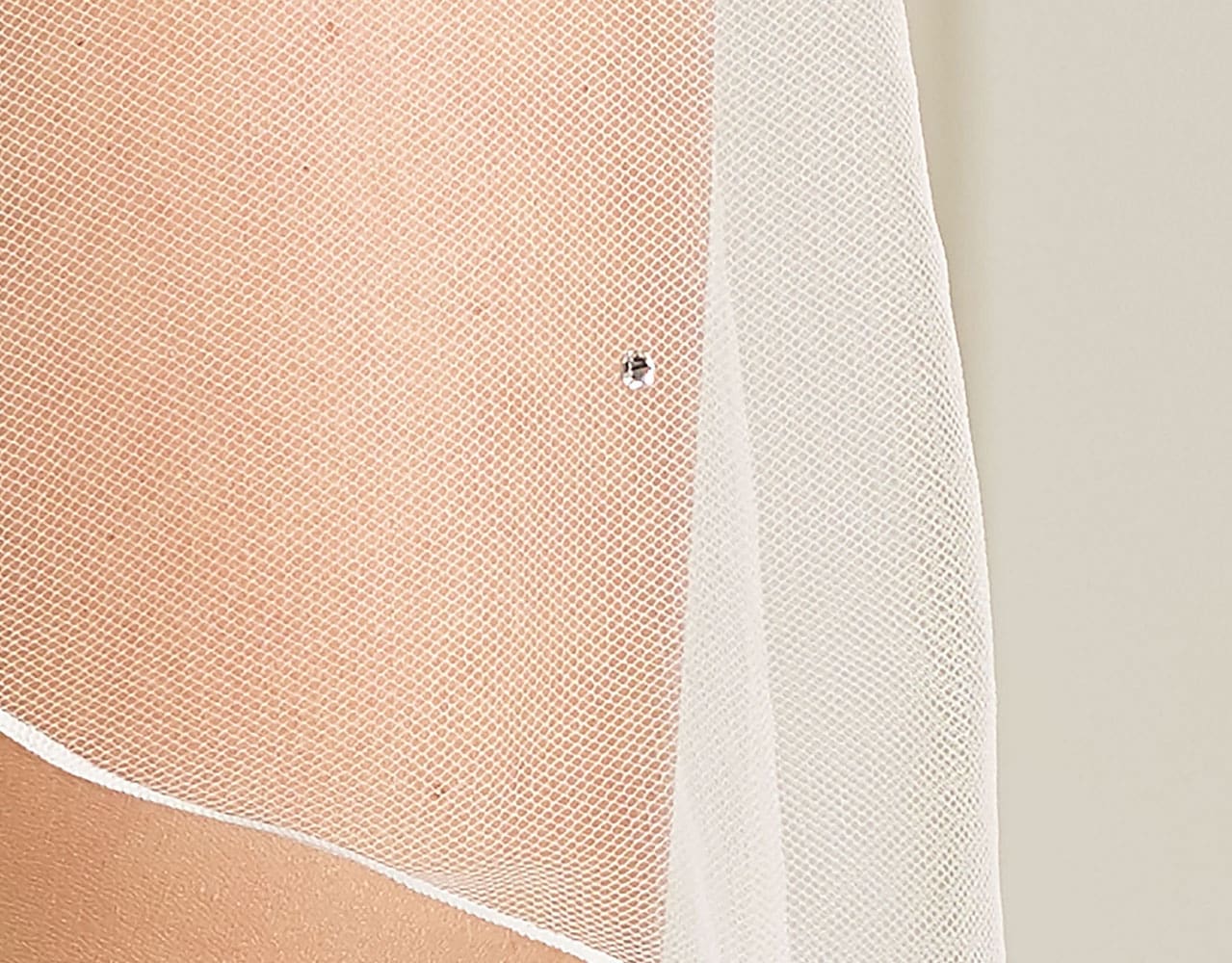 Dieser doppellagige Schleier hat eine Kurbelkante und ist aus Softtüll gefertigt. Der Schleier hat eine Länge von 110/70cm und ist mit Swarovski-Kristallen bestückt. Der Schleier ist mit einem Kamm ausgestattet, so dass dieser einfach in die Haare gesteckt werden kann.