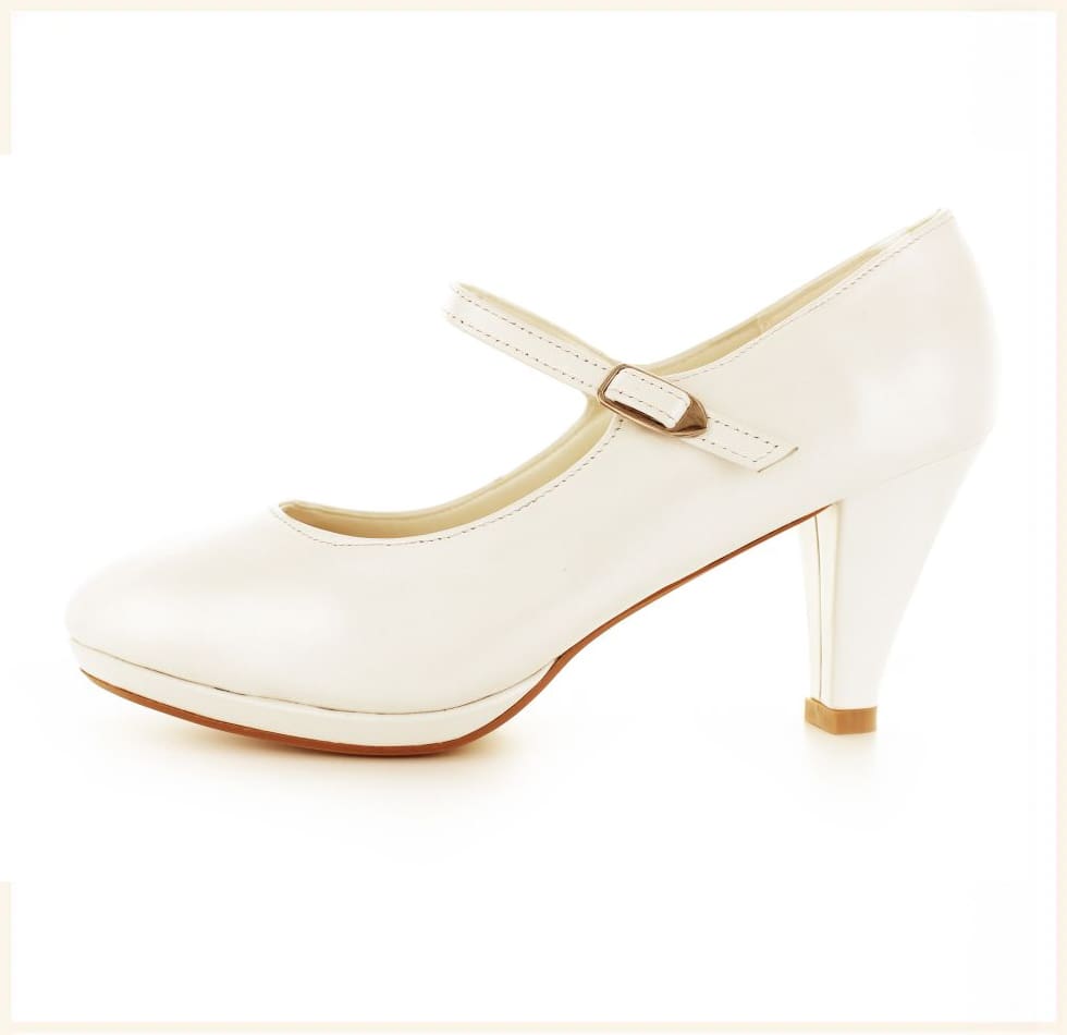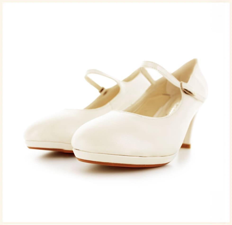 Klassische Brautschuhe mit schlichtem Design, gefertigt aus feinstem Leder sowohl Obermaterial als auch Sohle. Die Brautschuhe haben ein Riemchen mit einer stufenlos verstellbaren Druckknopfschnalle. Der Innenfuss ist mit Softschwammfutter ausgestattet und sorgt für ein unbeschwertes Laufgefühl.