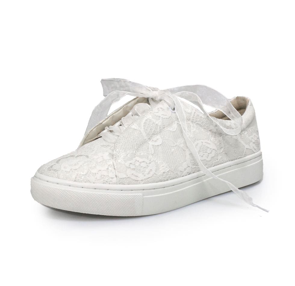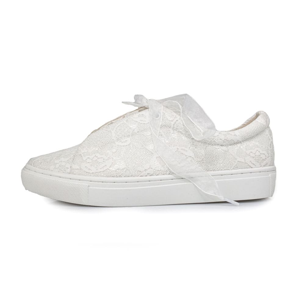 Der Brautsneaker Lace in ivory hat eine zauberhafte Glitter-Spitze. Der Glitter ist mit einer feinen Spitze überzogen und kreiiert so einen eleganten Look. Ob sportlich oder elegant - mit dieser Materialkombination passen die Brautsneakers perfekt zu jedem Brautkleid. Mit der zusätzlichen Polsterung durch Softschwammfutter wird der Komfort erhöht. Die Schnürlöcher sind bei diesem Brautsneaker Modell unter einer Lasche versteckt, sodass das Gesamtbild schlicht und elegant wirkt.