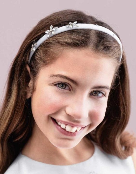 Haarschmuck Haarschmuck für die Kommunion verziert mit Blumen, Perlen, Glasperlen, Strasssteinchen und schmalen Schlaufen aus Organza. Der Haarschmuck ist hochwertig verarbeitet und passt sich an jede Kopfform an.white, 77520 Teilen0 Weitere ArtikelHaarreif 775233. März 2020Haarreif Kommunion 77523Mehr erfahrenSchleier für Mädchen 7716815. Februar 2021Schleier für Mädchen 77168Mehr erfahrenHaarschmuck Kommunion W2314. März 2023Haarschmuck Kommunion W23Mehr erfahren