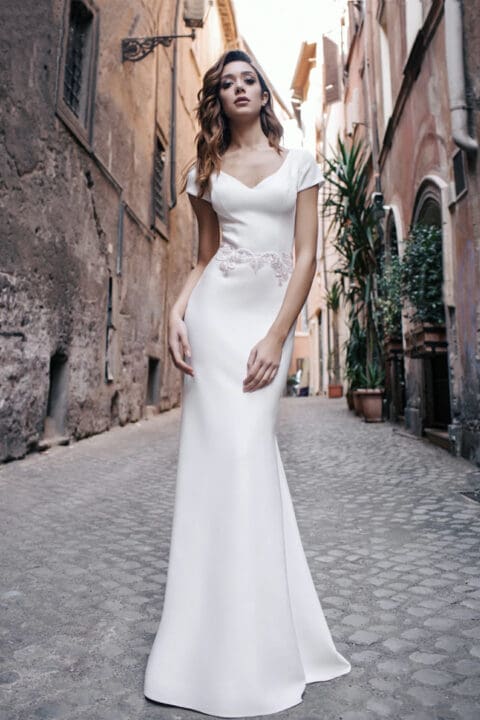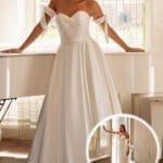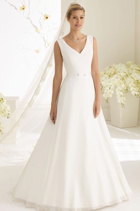 Liv ist ein eleganter Jumpsuit für die Braut aus hochwertigem Stretch-Crêpe gefertigt. Der Jumpsuit verfügt über einen V-Ausschnitt und einen raffinierten V-Rücken, ergänzt durch eine natürliche Taille. Der ärmellose Jumpsuit hat zarte Spaghettiträger. Ein tolles Brautoutfit für die moderne Braut.