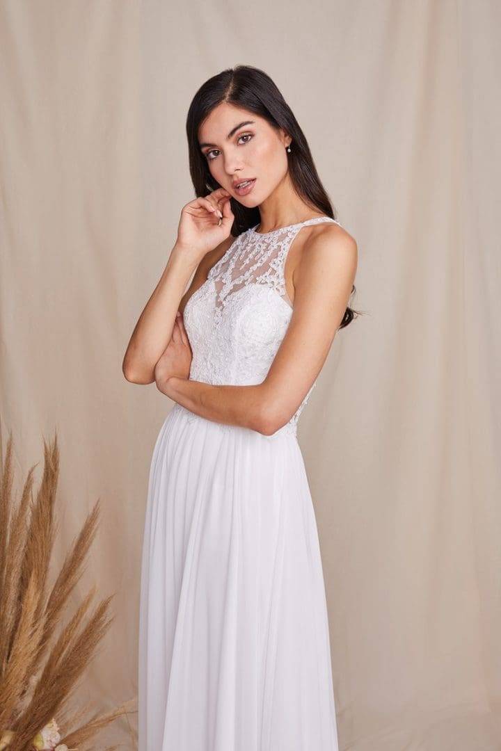 ZahraSchlichtes Standesamtkleid mit einem langen Chiffonrock und einer romantischen Spitze. Das Oberteil ist hochgeschlossen. Der Rücken glänzt mit einem auffallenden Tattoo-Effekt. Erhältlich in ivory, Grösse 34 bis 44 Teilen5 Weitere ArtikelStandesamtkleid22. März 2021Cocktailkleid LA612119Mehr erfahrenStandesamtkleid Elva17. Februar 2022ElvaMehr erfahrenStandesamtkleid schlicht Schlichte Standesamtbrautmode Brautmode für Standesamt1. März 2024Standesamtkleid ElyMehr erfahren