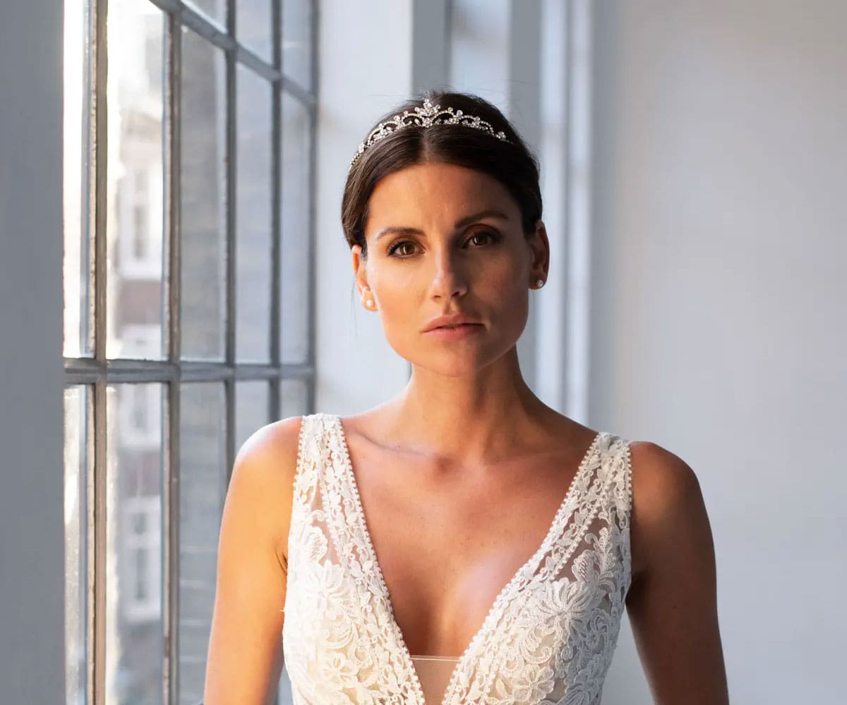 Der Tiara Mia ist aus wunderschönen Kristallen gefertigt. Der Haarschmuck passt sicher jeder Kopfform an. Ein klassischer Brautschmuck der zu vielen Brautkleidern passt.